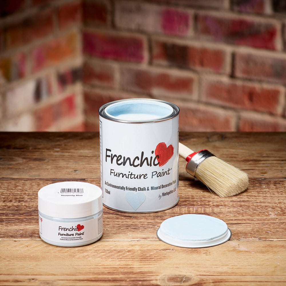 For the Frenchic effect, apply two different colours, one on top of the other, allowing paint to dry for at least 30 minutes between coats.  Gently using a damp cloth or fine sandpaper, rub to allow the undercoat of paint to shabby through leaving a distressed finish of two colours.  Use Frenchic Finish Coat to seal or use Frenchic Wax and buff to a gleam.